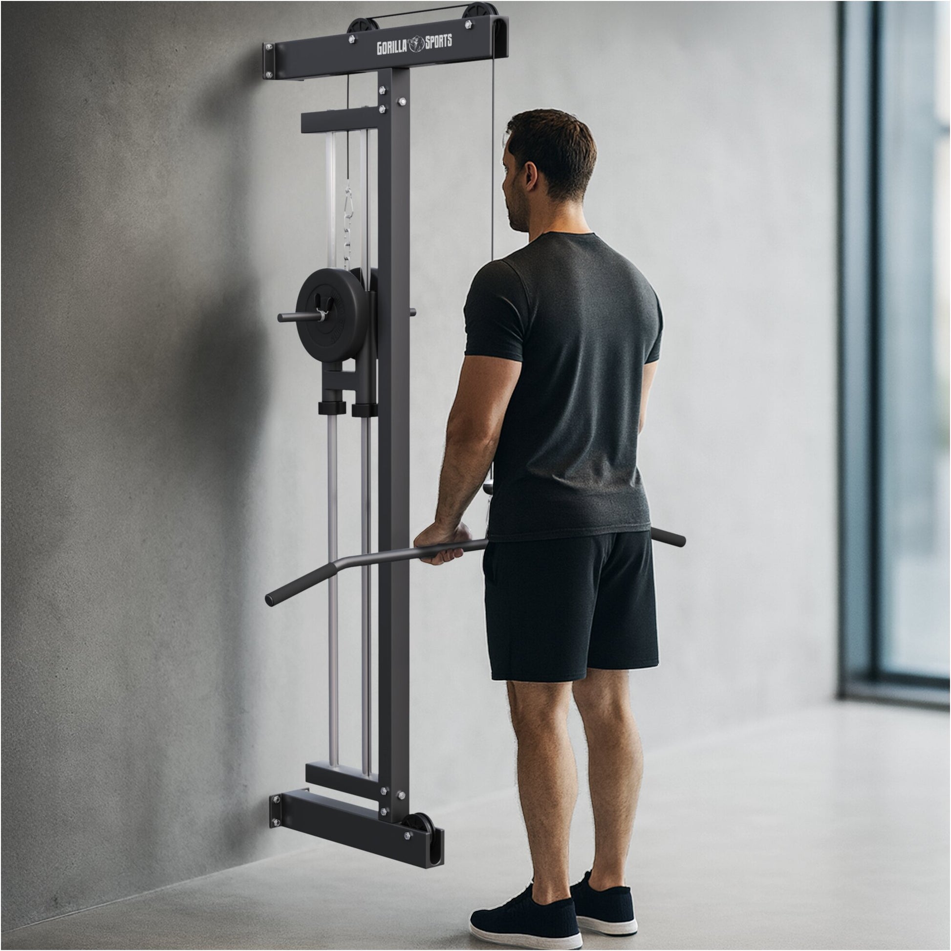 Multifunkcionalna zidna lat mašina Gorilla Sports je idealan dodatak kućnoj teretani za efikasan trening leđa, ramena, ruku i core-a. Montira se direktno na zid, zauzima minimalno prostora i omogućava izvođenje raznovrsnih vežbi pomoću sajle.