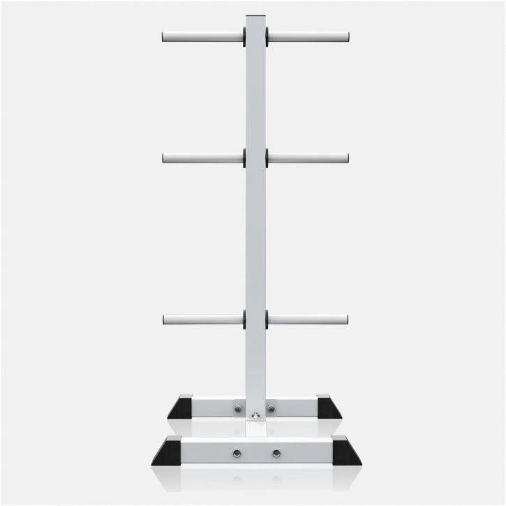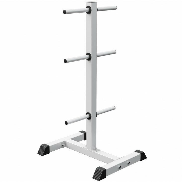 Stalak je izrađen od čvrstog čelika i obezbeđuje stabilnost čak i kada je opterećen maksimalnom težinom. Zahvaljujući šest držača, diskovi se mogu rasporediti po težinama, što trening čini jednostavnijim i bržim. Odlaganje i uzimanje diskova tokom vežbanja postaje praktično i sigurno, bez nepotrebnog gubljenja vremena.